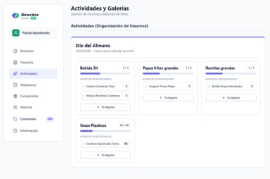 Votaciones seguras, galerías de fotos y gestión de insumos para convivencias. Todo fuera de WhatsApp.